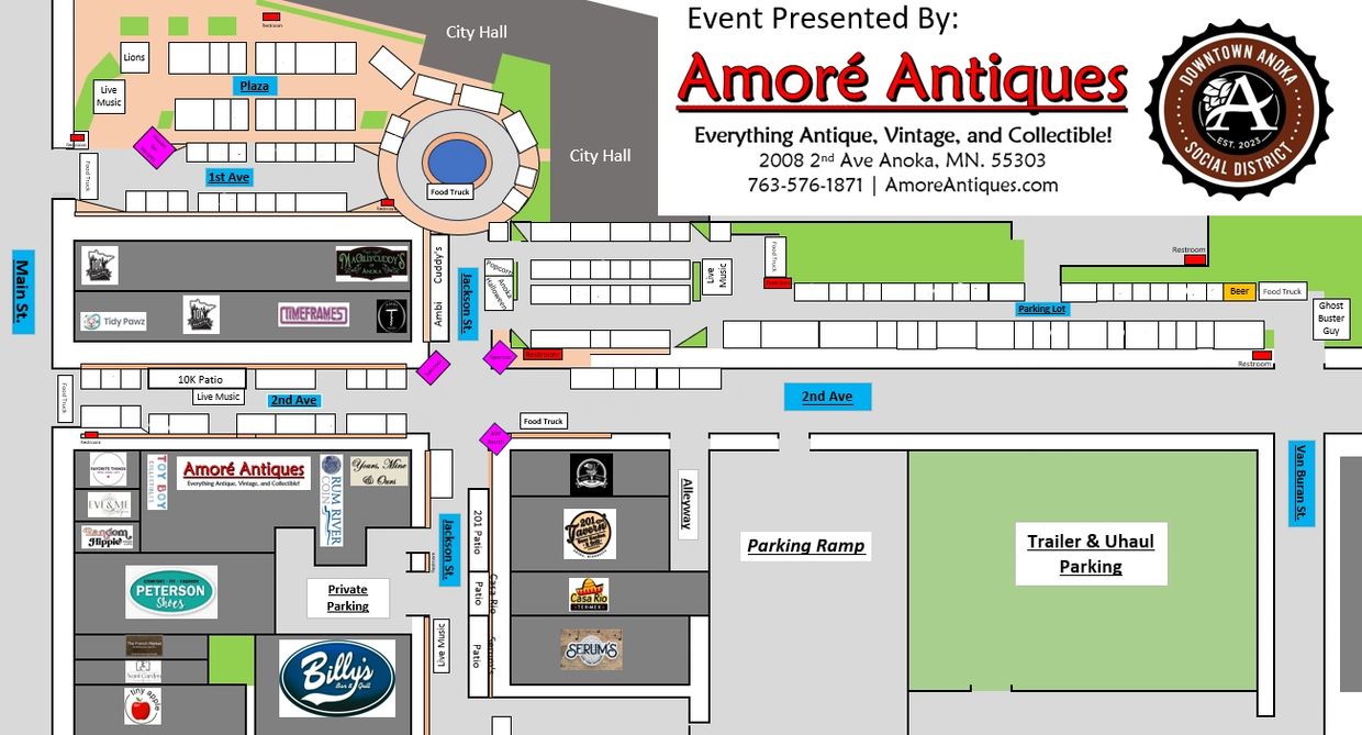 You wont go hungry! MaGillycuddy's will be on the street serving up smash burgers and beer. Gray Duck concessions will have their must have mini donuts, ODB's Meat and Greet will be serving up BBQ in a cup, Mansetti's Pizza will be slinging slices, and you'll find the best Gyros you've ever had. If that's not enough. You'll also find the Anoka Lions by Memorial Park serving up bratwurst and beers.