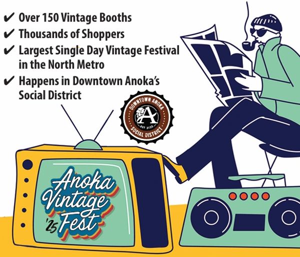 The sun will be shining on Downtown Anoka Saturday October 4th when Anoka Vintage Fest takes over Anoka's entertainment district. Over 150 vintage and antique vendors will fill the streets of downtown Anoka with the coolest vintage treasures. FREE ADIMISSION!